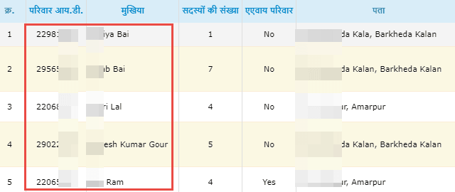 - यहां आप अपने परिवार क्रमांक, मुखिया का नाम एवं पता के साथ अन्य विवरण को चेक कर सकते है।