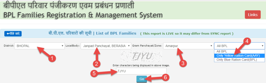 - ग्राम या फिर नगर पंचायत सेलेक्ट करने के पश्चात राशन कार्ड के प्रकार को सेलेक्ट करके सबमिट करने के पश्चात स्क्रीन पर बीपीएल परिवारों की सूची खुलकर आ जाएगी