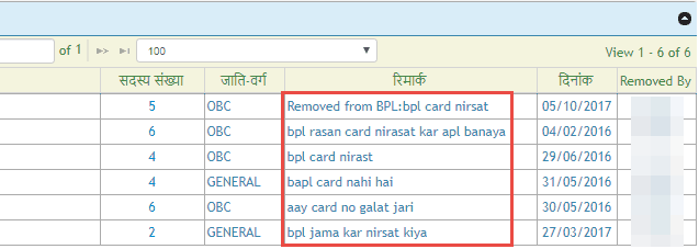 यदि आप का नाम राशन कार्ड लिस्ट में था परंतु अब हटा दिया गया है तो आप समग्र पोर्टल पर बीपीएल राशन कार्ड सूची से हटाए गए परिवारों के नाम की सूची को चेक कर सकते हैं और रिमार्क्स ऑप्शन में जाकर आप इसके पीछे का कारण भी जान सकते हैं ।
