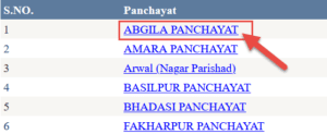 - स्क्रीन पर ग्राम पंचायत के तहत जितने भी गांव आते होंगे उनकी सूची खुलकर आ जाएगी। आप अपने गांव के नाम को सेलेक्ट कर लें।