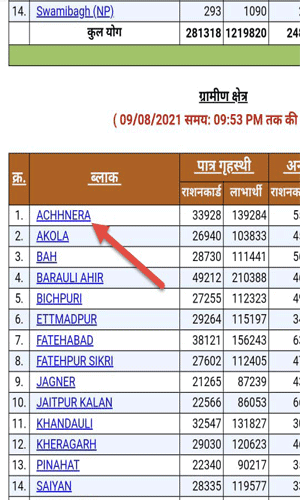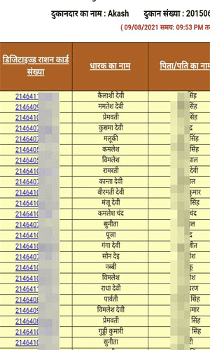 - जब आप राशन कार्ड के प्रकार को सेलेक्ट कर लेंगे उसके बाद जिले में जितने भी राशन कार्ड धारक होंगे, उनकी लिस्ट स्क्रीन पर खुलकर आ जाएगी।