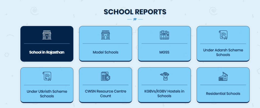 - राजस्थान राज्य के नागरिक इस पोर्टल के द्वारा राज्य के स्कूल की सभी कर्मचारियों और शिक्षा कार्यालय की संपूर्ण जानकारी आसानी से प्राप्त कर सकते हैं।