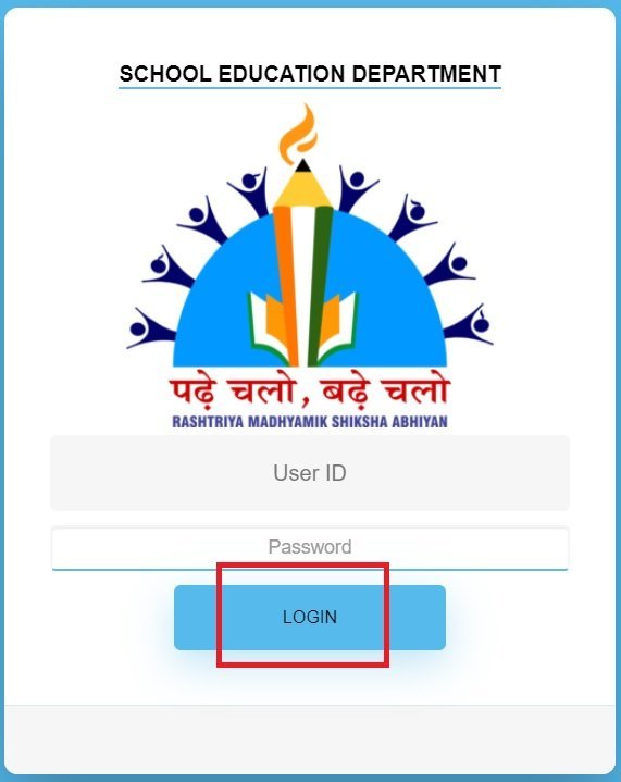 - RMSA लॉगिन के बाद आपके सामने आपको दो विकल्प दिखाई देंगे –यूजर आईडी और पासवर्ड , जिन्हें आप को भरना होगा।